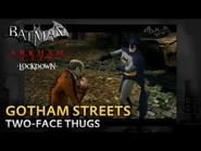 Batman affronte les hommes de main de Double-Face avant de se battre contre Double-Face lui-même.