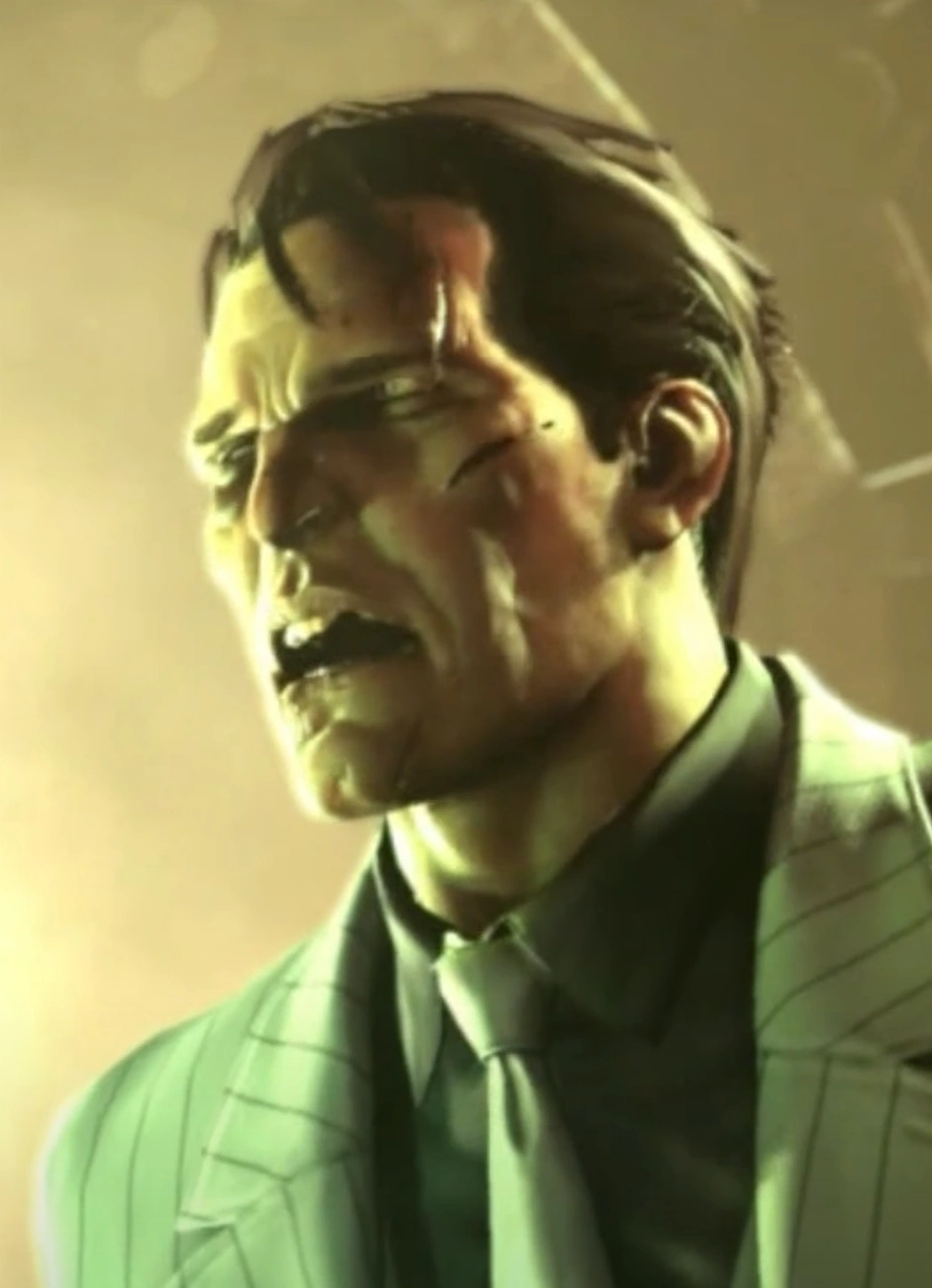 - Costume blanc a rayures : En plus du masque noir, Sionis porte un costume blanc à rayures noires.